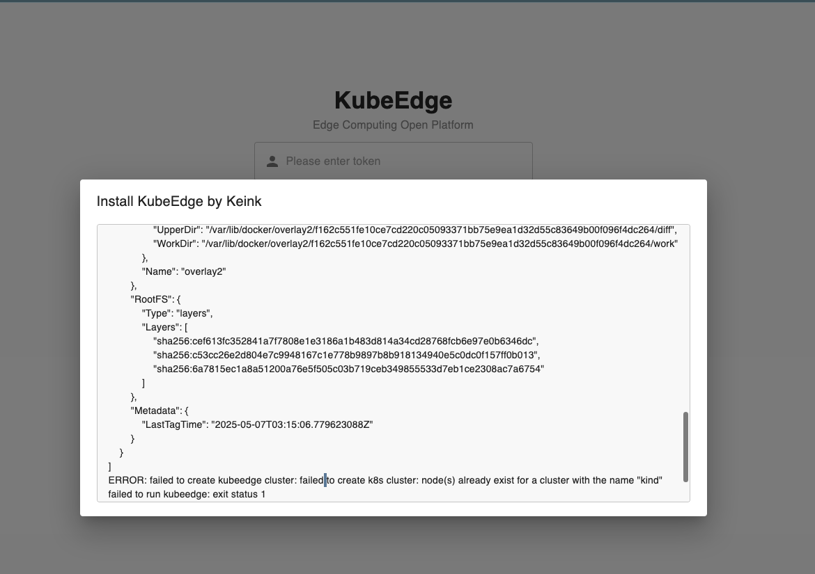 In v1.21, the dashboard functionality has been enhanced by designing a BFF (Backend for Frontend) layer to connect the frontend user interface layer with the KubeEdge backend API. Additionally, the dashboard is integrated with the keink project, allowing users to launch a keink cluster in the dashboard environment with just one command to experience KubeEdge features.